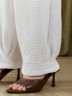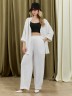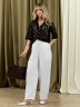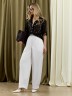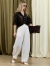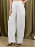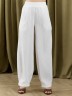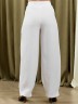 Брюки женские из фактурного гладкокрашеного полотна длинные, свободного покроя, на притачном поясе с эластичной тесьмой внутри, с карманами в боковых швах. По верхнему краю передних половин обработаны по две складки с собеих сторн. По низу брюк - также по 1 складке в боковых и шаговых швах.