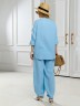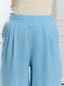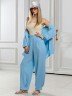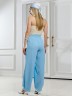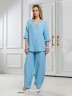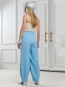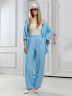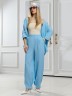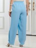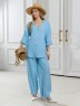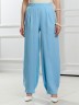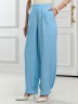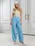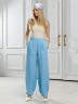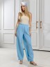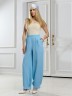 Брюки женские из фактурного гладкокрашеного полотна длинные, свободного покроя, на притачном поясе с эластичной тесьмой внутри, с карманами в боковых швах. По верхнему краю передних половин обработаны по две складки с собеих сторн. По низу брюк - также по 1 складке в боковых и шаговых швах.
