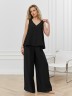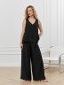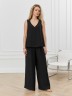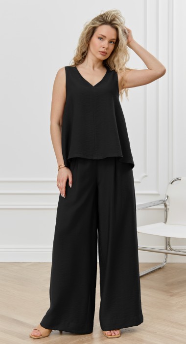 Брюки женские из гладкокрашеного фактурного полотна длинные, широкие по всей длине, на притачном поясе с эластичной тесьмой внутри, с карманами в боковых швах. Модным элементом является широкая подгибка нижних срезов.