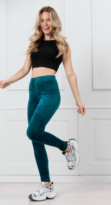 Леггинсы молодежные из трикотажного гладкокрашенного полотна «велюр-стрейч» длинные, облегающие фигуру, с эластичной тесьмой по талии.