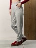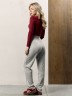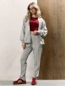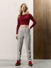 Брюки женские из трикотажного гладкокрашенного полотна «скуба», длинные, полуприлегающего силуэта, на притачном поясе с эластичной тесьмой внутри и карманами в боковых швах. Передние половины застрочены по центральным линиям, на задних половинах обработаны две вытачки в области талии.
