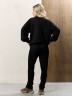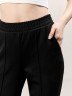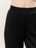 Брюки женские из трикотажного гладкокрашенного полотна «скуба», длинные, полуприлегающего силуэта, на притачном поясе с эластичной тесьмой внутри и карманами в боковых швах. Передние половины застрочены по центральным линиям, на задних половинах обработаны две вытачки в области талии.
