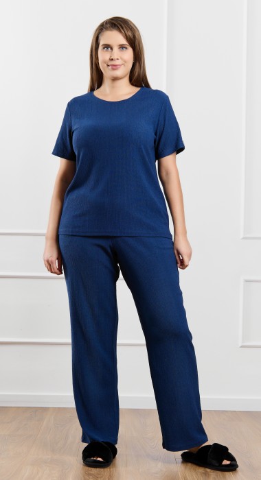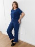 Брюки женские из гладкокрашенного трикотажного полотна «бурумчук», свободного покроя, с карманами в боковых швах, на притачном поясе с эластичной тесьмой внутри.