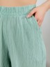 Брюки женские из гладкокрашеного тканого полотна, свободного покроя, с карманами в боковых швах, на притачном поясе с эластичной тесьмой внутри. При выборе изделия в белом цвете идеальным решением будет выбор белья нейтральных
