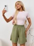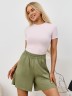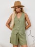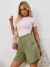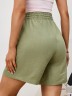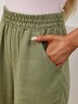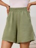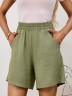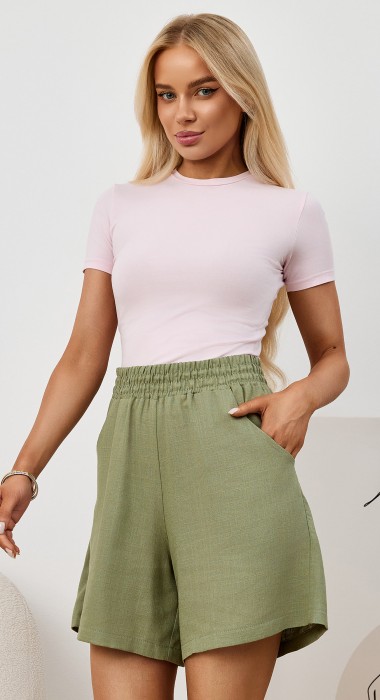 Шорты молодежные из гладкокрашеного тканого полотна «лен-вискоза», свободные, средней длины, на притачном поясе с эластичной тесьмой внутри, карманами в боковых швах.