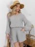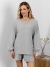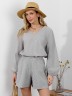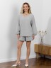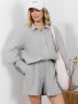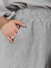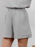 Шорты женские из тканого полотна «хлопок вареный» с набивным рисунком «узкая полоса», свободные, средней длины, с карманами в боковых швах, на притачном поясе с эластичной тесьмой внутри, двойной подгибкой низа имитирующей манжет.