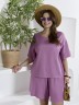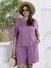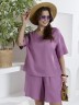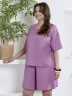 Шорты женские из гладкокрашеного тканого полотна, свободные, длиной до колена, с карманами в боковых швах, на притачном поясе с эластичной тесьмой внутри.