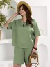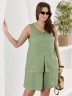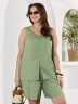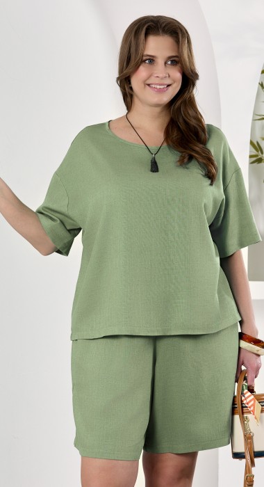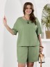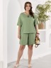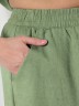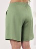 Шорты женские из гладкокрашеного тканого полотна, свободные, длиной до колена, с карманами в боковых швах, на притачном поясе с эластичной тесьмой внутри.