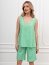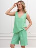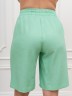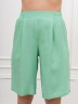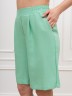 Шорты – женские из гладкокрашеного тканого полотна, свободные, длиной выше колена, с карманами в боковых швах и двумя заложенными складками по талии, на притачном поясе с эластичной тесьмой внутри. Средний шов передних половин обработан имитацией «гульфика».
