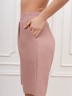Шорты – женские из гладкокрашеного тканого полотна, свободные, длиной выше колена, с карманами в боковых швах и двумя заложенными складками по талии, на притачном поясе с эластичной тесьмой внутри. Средний шов передних половин обработан имитацией «гульфика».