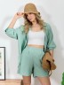 Шорты женские из гладкокрашеного тканого полотна, свободного покроя, укороченные, с карманами в боковых швах, на притачном поясе с эластичной тесьмой внутри.При выборе изделия в белом цвете идеальным решением будет выбор белья нейтральных