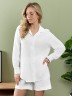 Шорты женские из гладкокрашеного тканого полотна, свободного покроя, укороченные, с карманами в боковых швах, на притачном поясе с эластичной тесьмой внутри.При выборе изделия в белом цвете идеальным решением будет выбор белья нейтральных