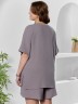 Шорты женские из тканого гладкокрашеного полотна «муслин», свободные, средней длины, с карманами в боковых швах, на притачном поясе с эластичной тесьмой внутри.