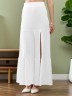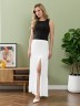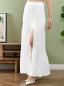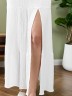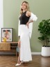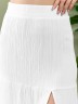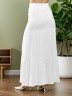 Юбка женская из гладкокрашеного тканого полотна, свободного кроя, длинная, состоящая из двух ярусов, каждый из которых присборен по шву соединения с верхней деталью, с ассиметричным разрезом.При выборе изделия в белом цвете идеальным решением будет выбор белья нейтральных