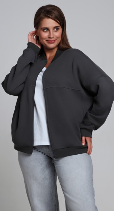 Куртка – женская из гладкокрашенного трикотажного полотна «лининг» прямого силуэта, свободная, с длинными втачными рукавами, горловиной овальной формы, обработанной втачной планкой, центральной бортовой застежкой на тесьму «молния». Полочка состоит из трех деталей, на нижней части в рельефах выполнены карманы, низ изделия с притачным поясом, рукава с притачными манжетами. Пояс, планка горловины, манжеты рукавов выполнены из трикотажного полотна «кашкорсе».