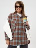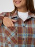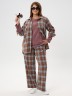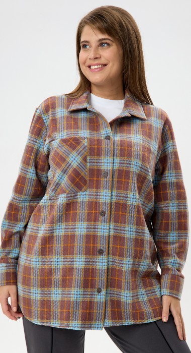 Рубашка (туника) женская из трикотажного полотна «флис» с набивным рисунком «клетка», свободного силуэта, с длинными втачными рукавами напритачных манжетах, стояче-отложным воротником, нагрудным карманом,фигурным низом и центральной бортовой застежкой на петли и пуговицы. Спинка – с отрезной кокеткой и бантовой складкой в центре соединительного шва.