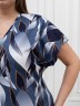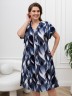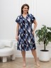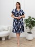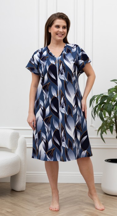 Халат женский из трикотажного полотна «кулирка» с набивным рисунком, слегка расширенный книзу, с короткими цельнокроеными рукавами, V-образной горловиной, арманами в боковых швах и центральной бортовой застежкой на тесьму «молния». Горловина и входы в карманы окантованы основным материалом.