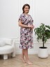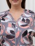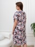 Халат женский из трикотажного полотна «кулирка» с набивным рисунком, слегка расширенный книзу, с короткими цельнокроеными рукавами, V-образной горловиной, арманами в боковых швах и центральной бортовой застежкой на тесьму «молния». Горловина и входы в карманы окантованы основным материалом.