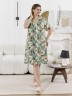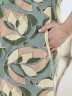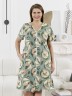 Халат женский из трикотажного полотна «кулирка» с набивным рисунком, прямого силуэта, с короткими втачными рукавами, горловиной V- образной формы, карманами в боковых швах и центральной бортовой застежкой на тесьму «молния». Полочка – с двумя небольшими двойными кокетками, выполненными по косой линии. Горловина переда, входы в карманы окантованы контрастным материалом.