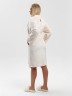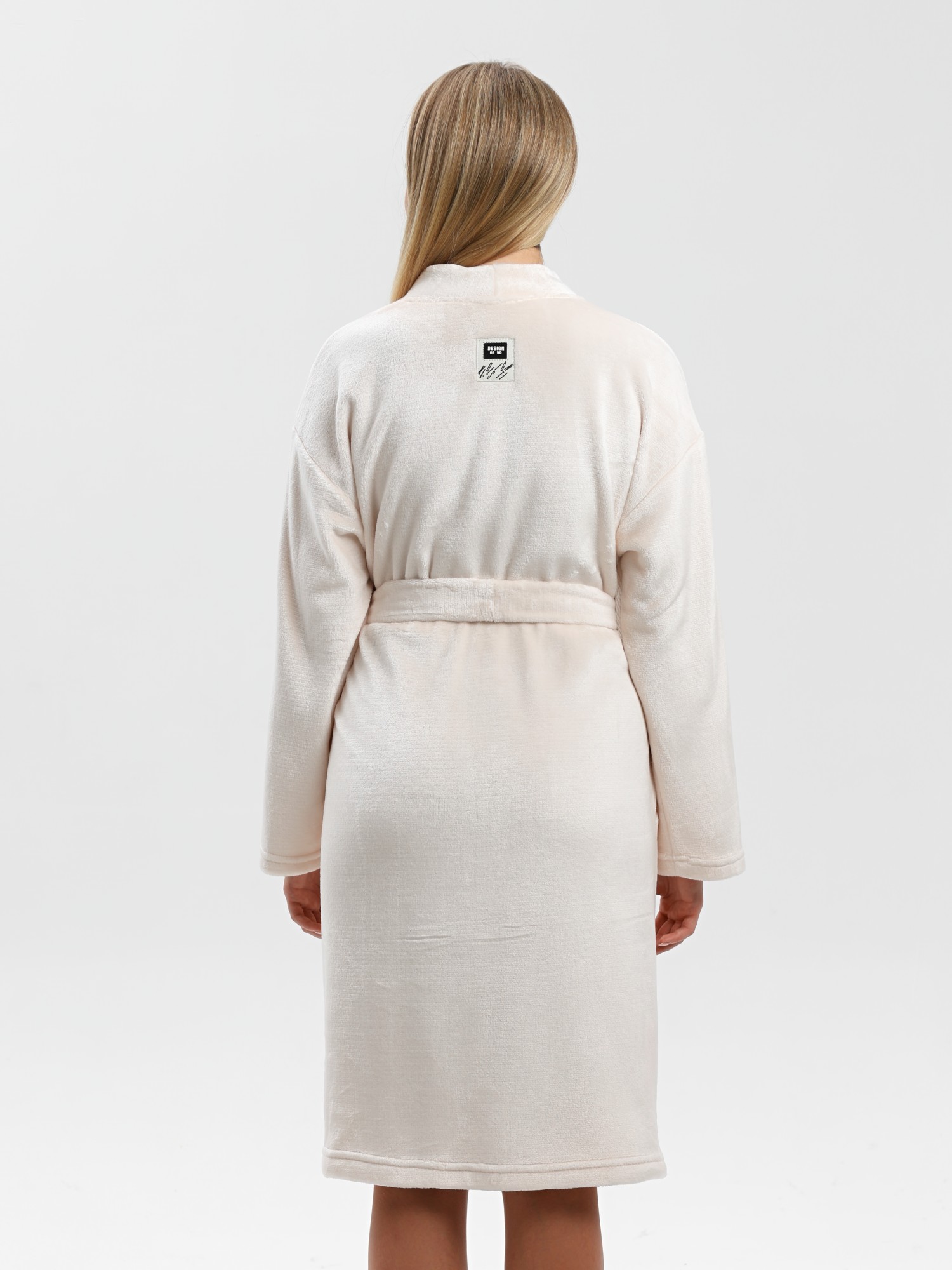 Халат молодежный из гладкокрашенного тканого полотна «велсофт», свободного покроя на «запахе», с длинными втачными рукавами, с притачной планкой по горловине и бортовым срезам, карманами в боковых швах, и декоративной нашивкой на спинке. Съемный завязывающийся пояс, продет в две шлевки в боковых швах на уровне талии.
