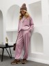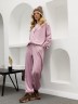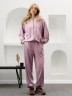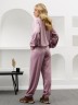 Костюм молодежный из гладкокрашенного полотна «велюр-стрейч», Куртка-бомбер прямого силуэта, свободная, с длинными втачными рукавами, горловиной овальной формы, обработанной втачной планкой, центральной бортовой застежкой на тесьму «молния». Низ изделия и нижние срезы рукавов обработаны подгибкой с вложением широкой эластичной тесьмы.Брюки – длинные, с карманами в боковых швах, на притачном поясе с эластичной тесьмой внутри. Нижние срезы обработаны подгибкой с вложением эластичной тесьмы.