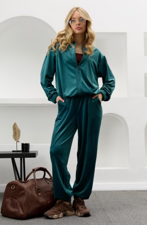 Костюм из гладкокрашеного трикотажного полотна «велюр стрейч», состоящий из футболки и леггинсов. Футболка – удлиненная, свободного покроя, со спущенной, линией плеча, короткими втачными рукавами, горловиной овальной формы, обработанной втачной планкой.Леггинсы – длиной до колен, с эластичной тесьмой по талии.