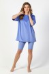 Костюм из гладкокрашеного трикотажного полотна «велюр стрейч», состоящий из футболки и леггинсов. Футболка – удлиненная, свободного покроя, со спущенной, линией плеча, короткими втачными рукавами, горловиной овальной формы, обработанной втачной планкой.Леггинсы – длиной до колен, с эластичной тесьмой по талии.