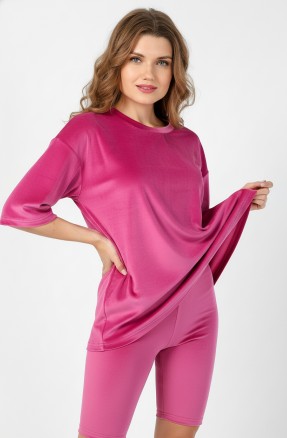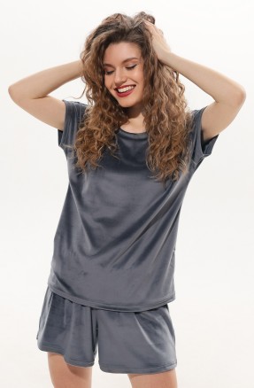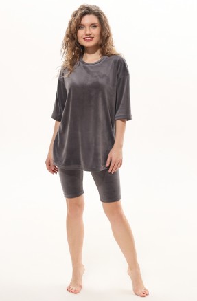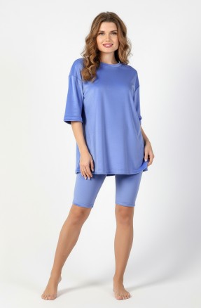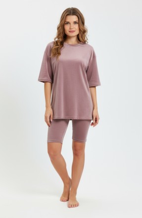 Костюм из гладкокрашеного трикотажного полотна «кашкорсе» с начесом (48% - хлопок, 47% полиэстер,5% лайкра), состоящий из футболки и брюк.