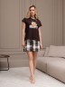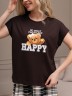 Костюм женский из трикотажного полотна "кулирка" в комбинации двух видов: гладкокрашеного и набивного с тематическим рисунком, состоящий из футболки и шорт. Футболка из гладкокрашеного полотна, с цельнокроенными короткими рукавами, горловиной овальной формы, обработанной втачной планкой и отделочной строчкой. В центре переда - принт, выполненгный в технике шелкографии. Шорты из полотна с набивным рисунком, свободного силуэта, на цельнокроенном поясе с эластичной тесьмой внутри.