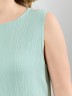 Сарафан женский из гладкокрашеного тканого полотна, удлиненное, полуприлегающего силуэта, без рукавов, с горловиной овальной формы. По нижнему прямому срезу притачная оборка с ассиметричным разрезом. Проймы, горловина окантованы основным материалом. При выборе изделия в белом цвете идеальным решением будет выбор белья нейтральных