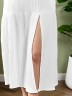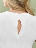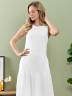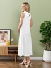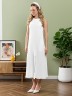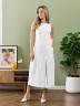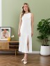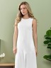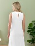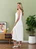 Сарафан женский из гладкокрашеного тканого полотна, удлиненное, полуприлегающего силуэта, без рукавов, с горловиной овальной формы. По нижнему прямому срезу притачная оборка с ассиметричным разрезом. Проймы, горловина окантованы основным материалом. При выборе изделия в белом цвете идеальным решением будет выбор белья нейтральных