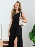 Сарафан женский из гладкокрашеного тканого полотна, удлиненное, полуприлегающего силуэта, без рукавов, с горловиной овальной формы. По нижнему прямому срезу притачная оборка с ассиметричным разрезом. Проймы, горловина окантованы основным материалом. При выборе изделия в белом цвете идеальным решением будет выбор белья нейтральных