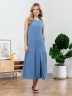 Сарафан женский из гладкокрашеного тканого полотна, удлиненное, полуприлегающего силуэта, без рукавов, с горловиной овальной формы. По нижнему прямому срезу притачная оборка с ассиметричным разрезом. Проймы, горловина окантованы основным материалом. При выборе изделия в белом цвете идеальным решением будет выбор белья нейтральных