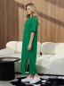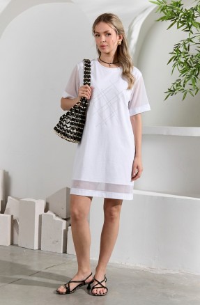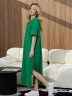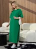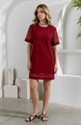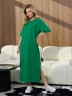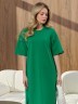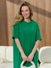 Туника женская из гладкокрашеного трикотажного полотна «кулирка» с лайкрой, прямого силуэта, со спущенной линией плеча, короткими втачными рукавами, горловиной овальной формы, обработанной втачной планкой из основного материала, с разрезами в боковых швах. Левый рукав дополнен декоративным элементом.