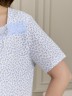 Сорочка женская из трикотажного полотна «кулирка» с набивным рисунком, свободного кроя, слегка расширенная книзу, с короткими втачными рукавами. Полочка – с двойными кокетками, кружевом в шве соединения кокеток с основной деталью и декоративной вставкой «петлей» для достижения небольшого эффекта драпировки. Основная деталь переда присборена по шву притачивания кокетки.