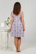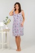 Сорочка женская из трикотажного полотна «кулирка» с набивным рисунком, расширенная книзу, без рукавов, с расширенной, углубленной горловиной овальной формы и притачной кокеткой по переду. Срезы пройм и горловины, а также шов притачивания кокетки, обработаны фасонной эластичной тесьмой с кружевным краем. Низ изделия обработан узкой обметочной строчкой.
