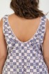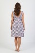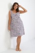 Сорочка женская из трикотажного полотна «кулирка» с набивным рисунком, расширенная книзу, без рукавов, с расширенной, углубленной горловиной овальной формы и притачной кокеткой по переду. Срезы пройм и горловины, а также шов притачивания кокетки, обработаны фасонной эластичной тесьмой с кружевным краем. Низ изделия обработан узкой обметочной строчкой.