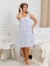 Сорочка женская из трикотажного полотна «кулирка» с набивным рисунком, расширенная книзу, без рукавов, с расширенной, углубленной горловиной овальной формы и притачной кокеткой по переду. Срезы пройм и горловины, а также шов притачивания кокетки, обработаны фасонной эластичной тесьмой с кружевным краем. Низ изделия обработан узкой обметочной строчкой.