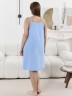 Сорочка женская из гладкокрашеного трикотажного полотна «кулирка», свободного кроя, на бретелях, выполненных из широкой окантовки из основного материала. Нижняя основная деталь полочки присборена по шву стачивания с кружевной кокеткой.