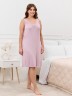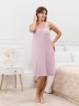 Сорочка женская из гладкокрашенного трикотажного вискозного полотна, слегка расширенная книзу, без рукавов на широких бретелях, с горловиной овальной формы. На полочке V- образная притачная кокетка из кружева, на спинке - углубленный вырез с кружевной поперечной вставкой. Горловина и проймы окантованы основным материалом, низ отделан узкой обметочной строчкой, создающей волнистый край.