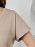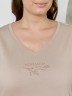 Туника женская из гладкокрашенного трикотажного полотна «кулирка», прямого силуэта, с цельнокроеными рукавами, горловиной V- образной формы, обработанной втачной планкой из основного материала, с разрезами в боковых швах. На полочке выполнена печать в технике "шелкографии".