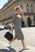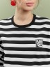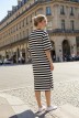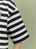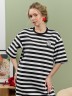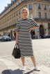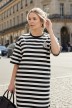 Туника женская из трикотажного полотна «футер двунитка» с набивным рисунком «полоса», свободного покроя, с короткими втачными рукавами, горловиной овальной формы, обработанной втачной планкой и разрезами в боковых швах. На полочке выполнен принт в технике «шелкографии».