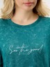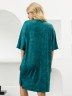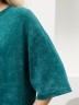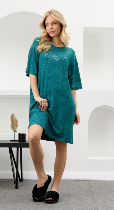 Туника женская из гладкокрашенного вискозного полотна с эффектом «варенка», свободного покроя, с втачными рукавами длиной до локтя, горловиной овальной формы, обработанной втачной планкой и разрезами в боковых швах. На полочке принт, выполненный в технике «шелкографии».