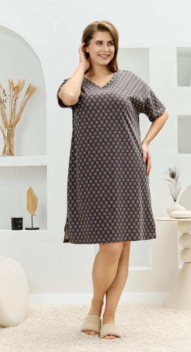 Туника женская из трикотажного полотна «кулирка» с набивным рисунком, свободного покроя, со спущенной линией плеча, втачными короткими рукавами, горловиной V-образной формы, обработанной втачной планкой и разрезами в боковых швах.