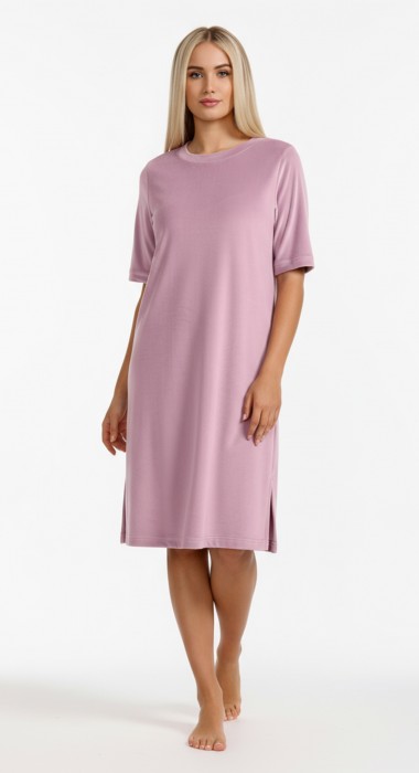 Туника женская из гладкокрашенного полотна «велюр стрейч», свободного покроя, с короткими втачными рукавами, горловиной овальной формы, обработанной втачной планкой и разрезами в боковых швах.