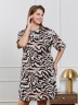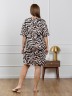 Туника молодежная из трикотажного полотна «кулирка» с набивным рисунком, прямого силуэта, с короткими втачными рукавами, горловиной овальной формы, обработанной притачной бейкой из основного материала, с разрезами в боковых швах. По центру полочки рядом с горловиной настрочен декоративный элемент-нашивка.