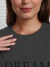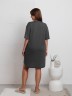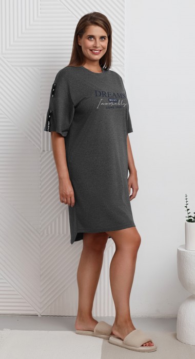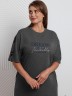 Туника женская из гладкокрашеного «меланжированного» трикотажного полотна «кулирка» прямого силуэта, горловиной овальной формы, обработанной втачной планкой, короткими втачными рукавами и фигурным низом. На рукавах модным элементом является отделка декоративной лентой, продетой в две обметанные петли. На полочке выполнен принт в технике «шелкографии».