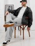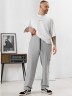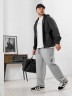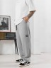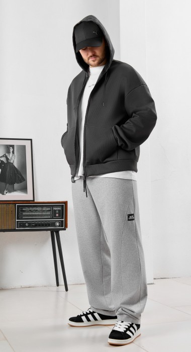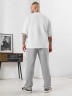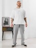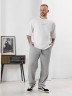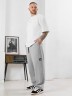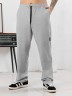 Брюки мужские прямого силуэта, из трикотажного полотна «футер двунитка с лайкрой». Модель с рельефными швами по передним деталям, декоративной «нашивкой», с карманами в боковых швах, на притачном поясе с отстроченной эластичной тесьмой и шнуром для регулирования степени прилегания изделия по линии талии, продетым через две обметанные петли в центре пояса.