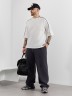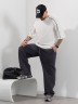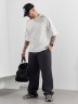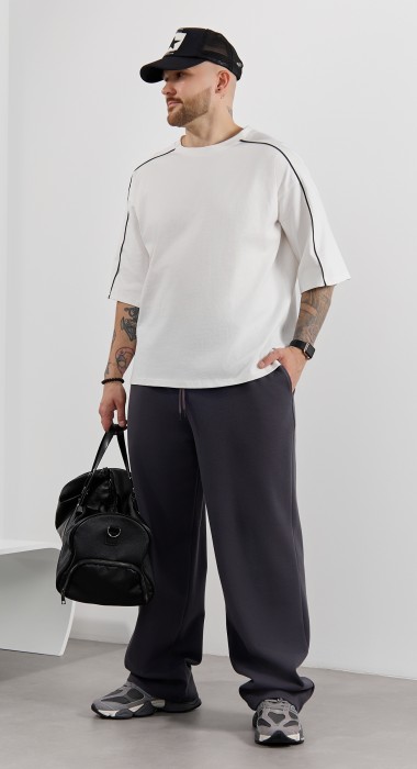 Брюки мужские из трикотажного полотна "интерлок-пике", на притачном поясе с эластичной тесьмой внутри, с карманами в боковых швах. Низ брюк прямой с подгибкой. Для регулирования степени прилегания изделия по линии талии предусмотрен декоративный шнурок, вставленный в пояс и продетый через две обметанные петли в центре.