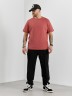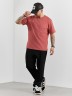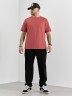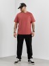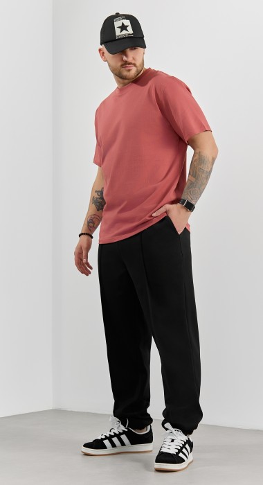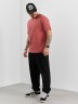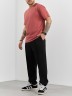 Брюки мужские из трикотажного полотна "интерлок-пике", на притачном поясе с эластичной тесьмой внутри, с карманами в боковых швах. По центру передних половинок расположены стрелки, закрепленные отделочной строчкой. Нижние срезы обработаны подгибкой с эластичной тесьмой. Для регулирования степени прилегания изделия по линии талии предусмотрен декоративный шнурок, вставленный в пояс и продетый через две обметанные петли в центре.